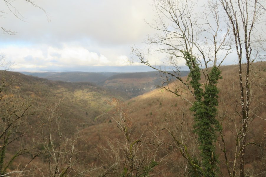 Passage par le belvédère de la reculée de la cascade de la Tuffière, tour de « sur le mont » et vue sur la reculée de la cascade de la Peusse. Retour par le bois de la Rappe.