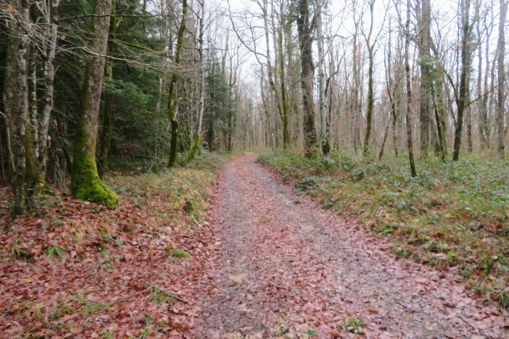 Nous commençons par un chemin goudronné de frais, les lapins et les chevreuils vont être contents ! Puis nous poursuivons à travers bois, peu de dénivelé, terrain gras mais sans difficulté, les langues vont bon train, si on rencontre un chamois ce sera un spécimen atteint de surdité.